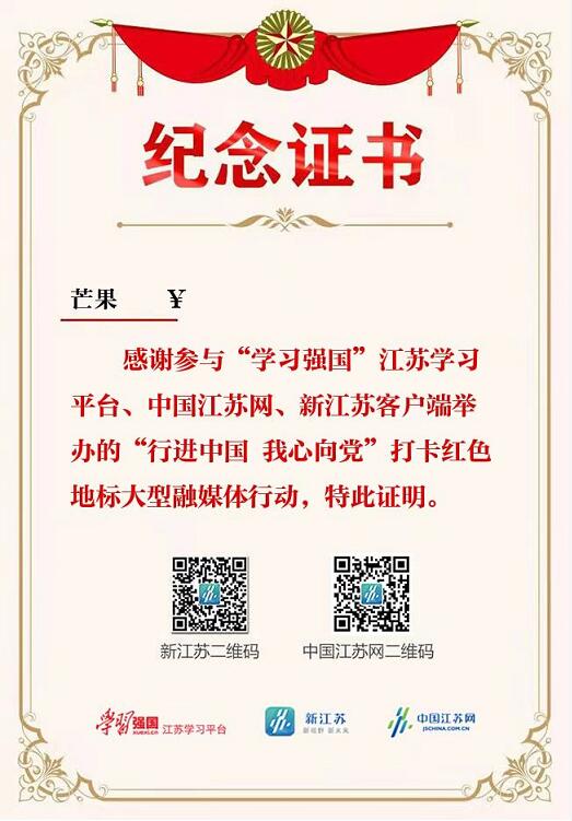 线上参观让但沛宸对刘胡兰充满了敬佩之情。参观后,但沛宸妈妈使用中国江苏网、新江苏客户端制作的“行进中国 我心向党”打卡红色地标UGC小程序进行线上打卡,并领取纪念证书。“妈妈给我讲了刘胡兰的故事,她15岁就牺牲了,是一个顶天立地的小英雄。我作为一个小小男子汉,要向刘胡兰学习。”但沛宸说。