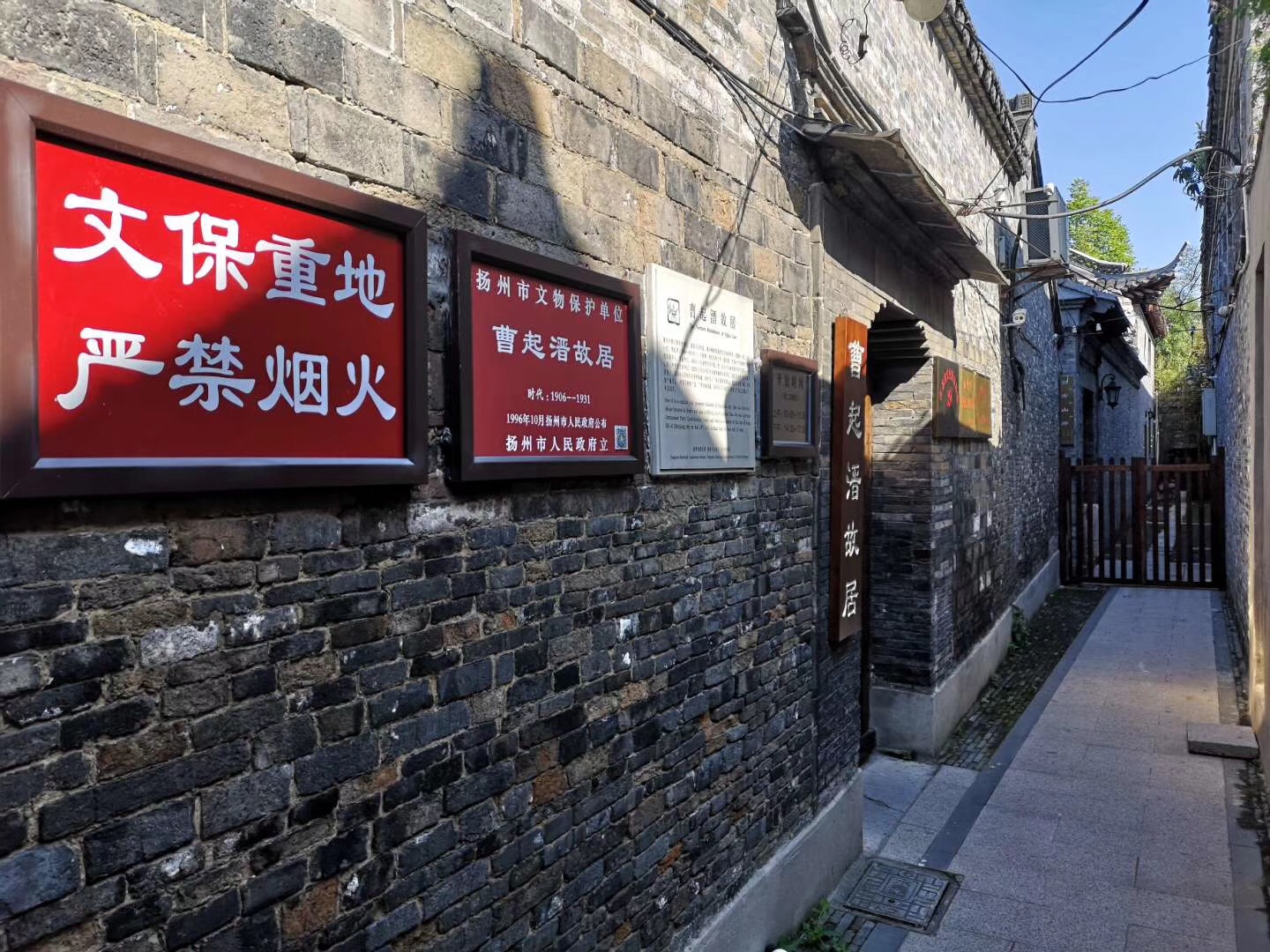 交汇点讯 在扬州古城东关街逸圃东面,有一条金桂圆巷,不足两米宽的小巷子虽不过百米,却把东关街的喧嚣隔绝开来。沿着小巷一直向前行至深处,一间小小的四合院坐落眼前,门前的牌匾上赫然写着——曹起溍故居。