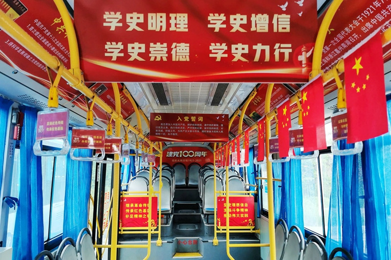 为了庆祝中国共产党成立100周年、进一步深化党史学习教育,徐州多地公交公司创新学习载体,利用公交车流动性强、宣传面广的优势,把党史知识“搬进”车厢,分布在广告展板、拉手、座椅、车身等处,将公交车打造成为党史学习教育的“流动课堂”,在潜移默化中将党的思想融入到了日常生活中。
