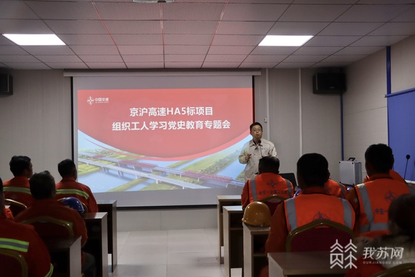在省重点交通工程——京沪高速改扩建工程淮安段,中交一公局二公司京沪高速HA5标项目书记郑勇为工人们讲述了周恩来的故事。通俗生动的语言让工友们听得入了神。郑勇告诉记者,通过讲故事的方式,让工人们学起党史来不枯燥、不单调。“我们项目党支部组织工人集体观看了电影《厉害了我的国》,给工人们讲述中国共产党的奋斗故事,让党史教育在工地一线落地生根。结合党史学习,项目党支部积极开展 ‘三进六必谈’活动,党员深入到施工现场、班组、宿舍和工人谈心,为他们排忧解难,把党的声音和关心传递给工人。”