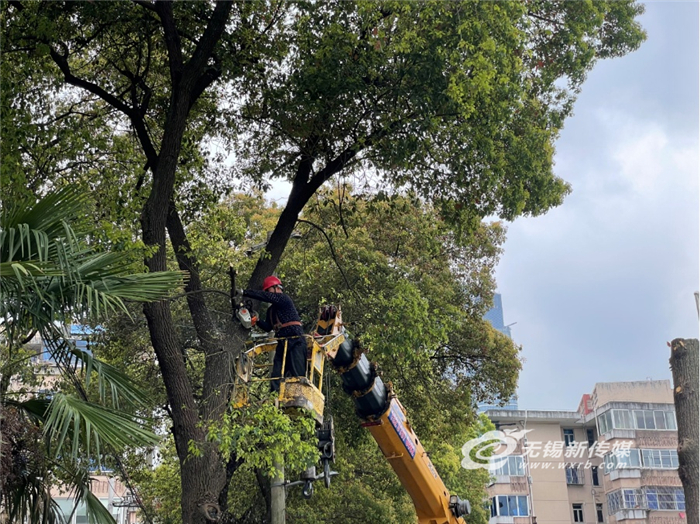 这7棵大树,不仅是居民的“心病”,也成为街道、社区的一道难题。“修剪遮阳树木是辖区老新村内每年的固定‘节目’,但这几栋楼存在特殊性,一是地势低,院落与梁溪路之间仅有一个供行人通过的陡坡;二是空间小,门口只能一辆小车单向通行。基于这两点大型绿化工程车难以进场。”荣巷街道综合行政执法局综合科副科长沈静透露。为此,每年只能通过人工作业修剪一些零星的枝干,但香樟不同于其他树种,长得十分快,“基本上修剪完半年后又能恢复原样,问题周而复始。”