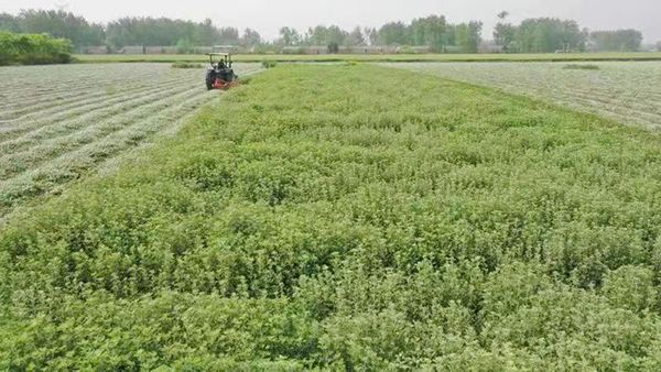初夏时节,在宿迁市泗洪县金锁镇双湖居委会千亩艾草种植基地,鲜嫩艾草长势喜人,满眼绿色。微风拂过,缕缕艾香扑面而来。伴随着收割机的阵阵轰鸣,绿油油的艾草随之倒在田地中,等待着收割人员捆扎装车。