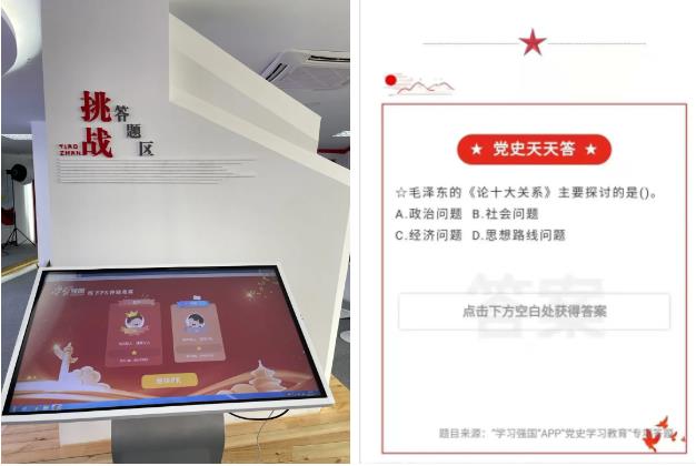 建成“学习强国”线下体验馆,配备“学习强国”线下对战、习语常听等实体机,同时开设视听学习、读书沙龙、轻松书吧等专区,线上线下学习同步开展,进一步增强党员群众参与感和积极性。“十里漕湖”微信公众号开设党史学习教育专题专栏,线上推出“党史天天答”线上答题,形成以比鼓劲、以竞促学的浓厚氛围。