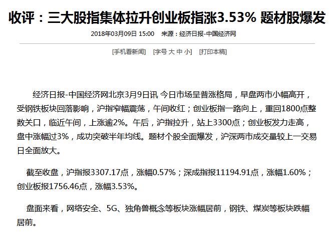 截至收盘,沪指报3307.17点,涨幅0.57%;深成指报11194.91点,涨幅1.60%;创业板报1756.46点,涨幅3.53%。