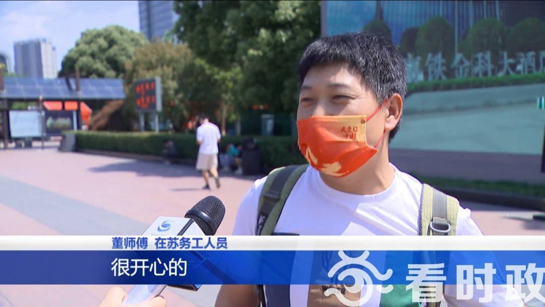 在苏务工人员董师傅说:“回家能和老婆孩子在一起,很开心的,几个月了没见面了,特产想买,但是没时间,赶紧回家。”