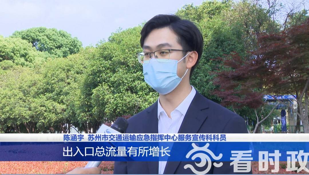 苏州市交通运输应急指挥中心服务宣传科科员陈涵宇介绍,5月20日20点到5月21日上午10点,苏州市市管高速公路的出入口总流量有所增长,环比上升约6%,其中私家车的流量环比上升约8%。