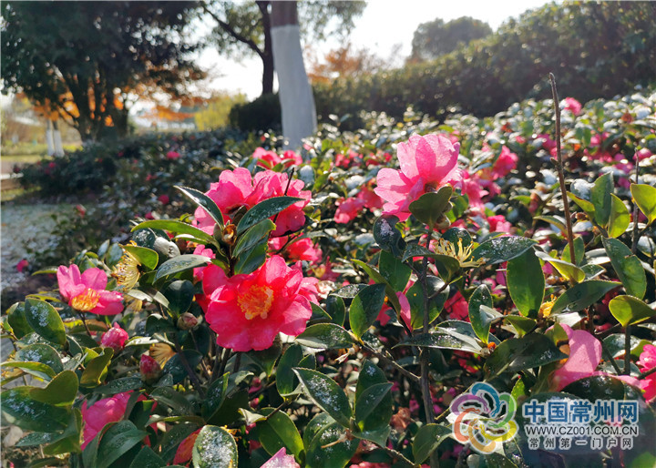 中国常州网讯 寒冬季节的龙城,众芳摇落,一时间万物萧瑟,有一种植物却在此时绽放艳丽的花朵,把冬天点缀得不再单调,那就是茶梅。它穿越凛冽的寒风,说是欺霜傲雪也并不为过,甚至它比梅花开得更早,花朵凋零比梅花更晚,可以陪伴人们整个冬季,直到春季还在锲而不舍地盛放。