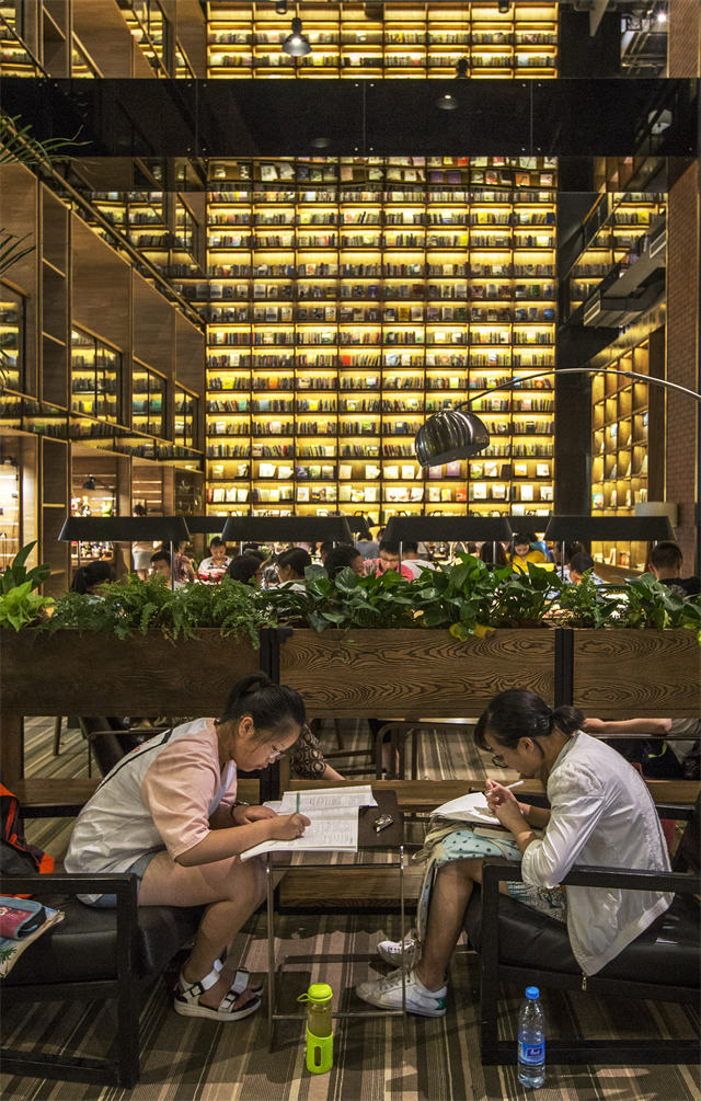 漫步在新世纪14楼—16楼,这里的半山书局与传统书店截然不同:12米高一整面书墙,被誉为常州“离天空最近的书店”;通过对实体书店的转型升级,书城三个楼层分别涵盖阅读、写作、咖啡、花艺等多种文艺生活元素,让市民看到一种多元化、场景体验式的一站式服务。从“书店+”到“文化+”,半山书局是荷花池街道业态更新迭代涌现的新商业模式之一,也为常州文化消费营造了新的时尚。