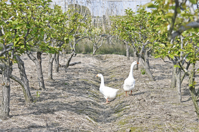 顾亚凤家种植梨树已有22年的历史,园内的梨树和著名的焦溪翠冠梨同品同种, 这几年来,这对老夫妻陆续购置了除草机,撒药机等机械化农具,在机械农机的加持下,老夫妻的果园每年的种植规模都在扩大,今年种植的梨树已达千棵。