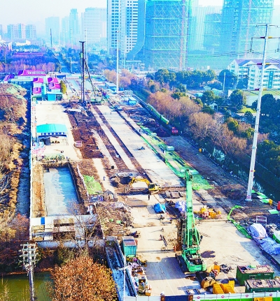 近日,位于河西泰山路上的南京地铁7号线已进入封闭围挡施工阶段。该段路共涉及地铁7号线雨润路站、中胜站、新城科技园站。据悉,地铁7号线是南京第一条全面采用全自动驾驶技术的线路,设计时速80公里,线路长约35.49千米,设站27座,计划2021年通车运行。本报记者 冯芃摄