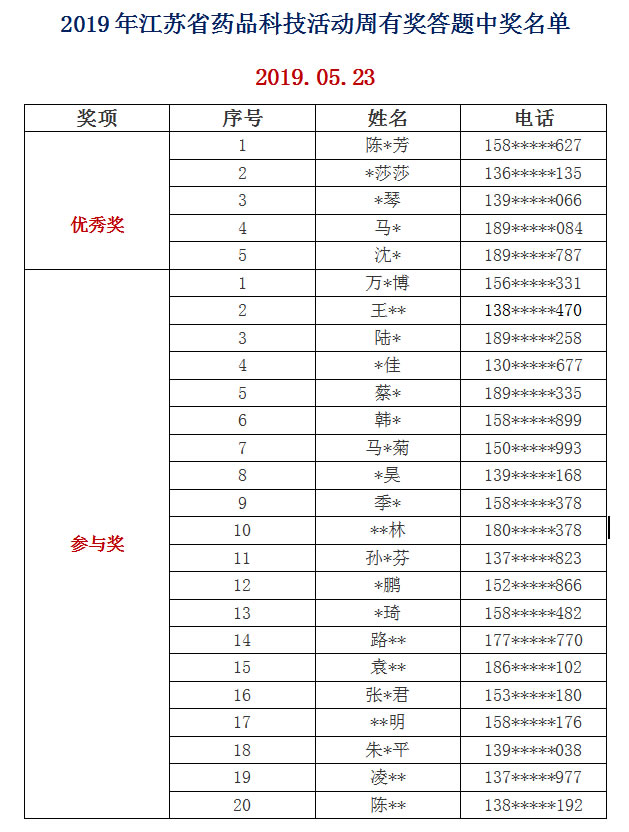 据介绍,此次江苏省药品科技活动周有奖答题活动将从5月21日持续至5月26日,离活动结束倒计时3天啦!根据答题规则,参与者每次需答5道题目,每个手机号码可以重复答题,单次5道题全答对者,将获得一次“优秀奖”抽奖资格。所有参与答题者,均有获得“参与奖”的抽奖资格。
