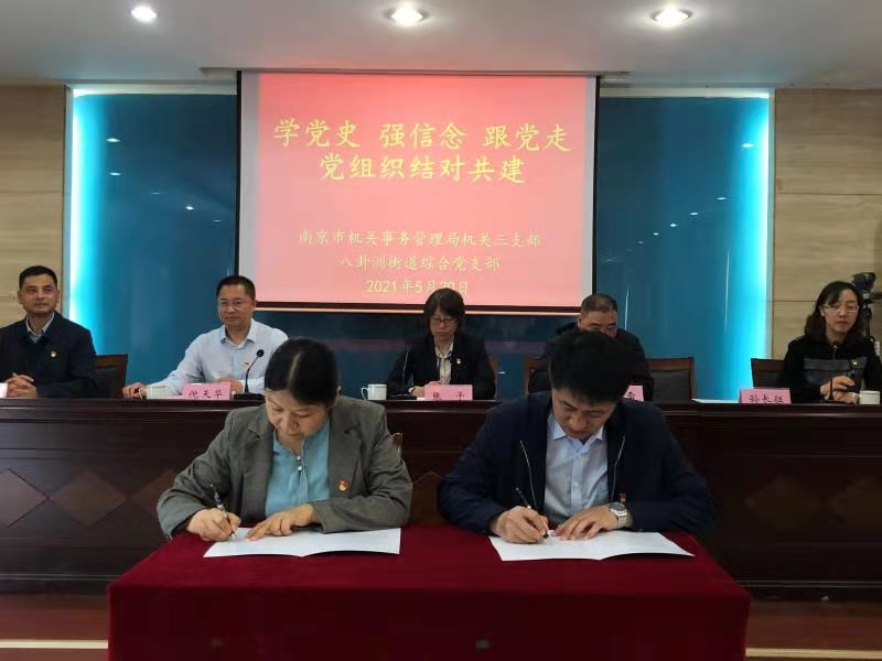 新江苏·中国江苏网5月21日讯 为进一步贯彻落实习近平总书记关于学党史、悟思想、办实事、开新局的要求,南京市机关事务管理局机关三支部与南京市栖霞区八卦洲街道综合党支部围绕组织共建、资源共享、实事共办,开展学党史、强信念、跟党走支部共建活动。