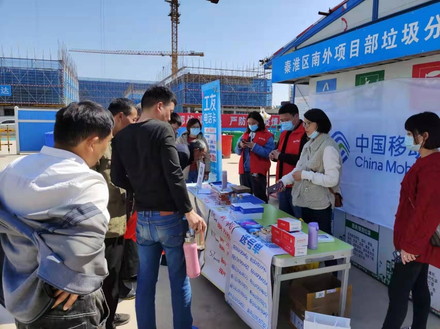 在淮安市2022年“春风行动”启动仪式暨大型招聘会现场,移动志愿者积极为现场求职者提供公益服务,热心回答他们关于通信业务的问题,指导他们登录本地招聘平台。做了多年家庭主妇的张女士今年准备重返职场,在移动志愿者帮助下,她很快就登录上招聘平台,筛选适合自己的岗位。