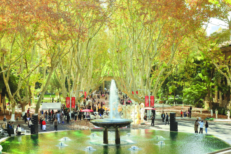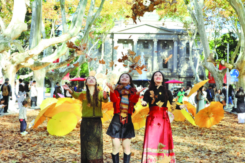 天空碧蓝,落叶金黄,又是一年梧桐染秋的季节。11月24日,东南大学迎来一年一度的“梧桐文化节”。四牌楼校区被誉为“最美200米”的梧桐大道上,一堂美若画卷的非遗课程正在展开。