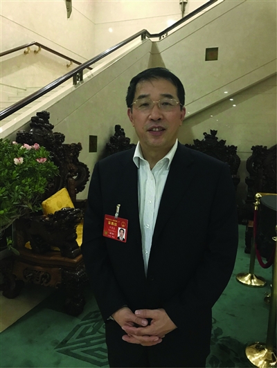 扬子晚报记者石小磊采访全国人大代表、省农委主任吴沛良。 新华报业全媒体记者 肖勇 摄