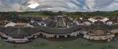 中国江苏网7月6日讯7月4日上午,“喜迎十九大 全景看江苏”走进句容摄影采风活动在宝华山脚下的千华古村举行,来自省内各大媒体的资深新闻摄影记者和著名摄影家近40人聚集在此,用镜头捕捉这座南京东郊小城的发展新貌、旖旎风光。图为千华古村全景。