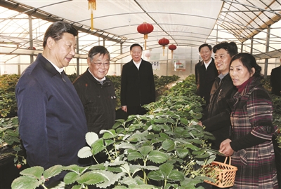 2014年12月,习总书记在赵亚夫的介绍下,参观世业农业园。(资料图片)