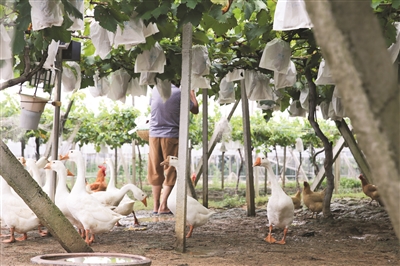 上面种果树,下面养家禽,成为戴庄农民普遍的种养模式。