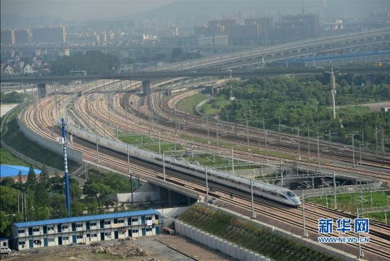 2013年7月1日,一列从南京方向开过来的和谐号动车组驶入杭州东站。当日,南京至杭州(宁杭)、杭州至宁波(杭甬)高速铁路正式开通运营。这标志着继沪宁、沪杭高铁建成通车后,长三角地区的高铁三角网络正式形成。新华社记者韩传号摄