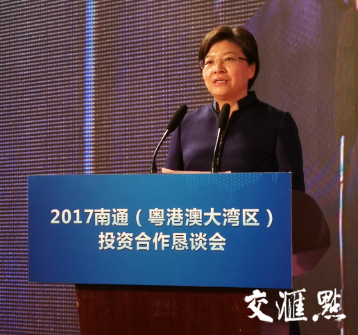 恳谈会上,韩立明给粤港澳大湾区企业家带来了更多的合作机遇,她说,南通正处在“一带一路”、长江经济带建设和长三角一体化、江苏“1+3”功能区等战略叠合交汇。根据建设上海“北大门”的蓝图,南通正打造具有较高开放程度的国际化城市,把“经济中心、交通枢纽、创新之都、花园城市”的蓝图一步步变为现实,让南通由“潜力股”加快向“绩优股”转变。其中特别突出科技创新的核心作用,构建创新环境开放包容、创新主体高度集聚、创新要素自由流动的创新生态系统,加快建设国家创新型城市,“像纽约边上的新泽西、东京边上的横滨一样,南通要努力做上海边上的‘深圳’”。韩立明说。