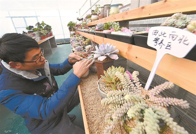 姜堰孔庄村80后小伙子顾鑫,辞职回家打造一个颇具规模的“多肉王国”。吴 俊摄 视觉江苏网供图