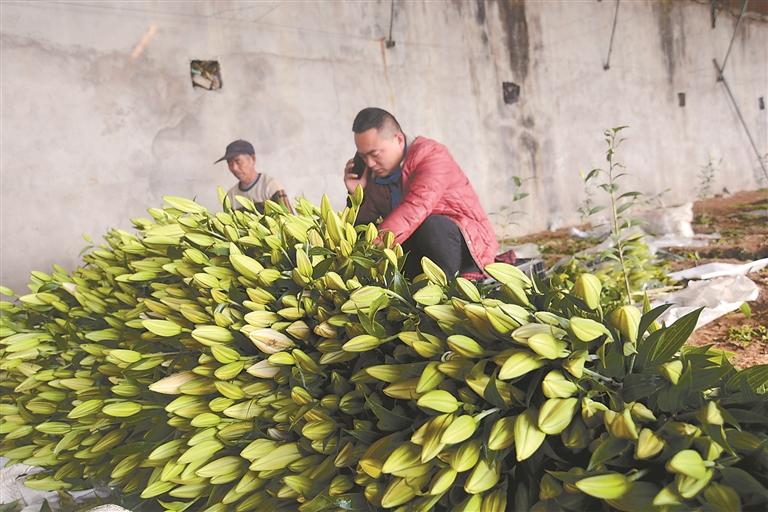 元旦临近,东海县双店镇百合价格直往上涨,花农抢抓采摘供应市场。宋彦伟摄 视觉江苏网供图