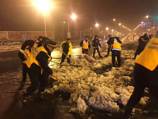 其实又何止是市区的道路,记者在这次降雪过程中前往高速公路、国道省道、机场车站采访,发现许多工作人员通宵达旦忙碌着,“已经一夜没睡觉了”,根本无暇休息,“无论是白天还是黑夜,雪不停、扫不止”。行车道上落雪即化,是因为养护人员连夜撒了除雪剂,路上一旦出现积雪,铲雪车会立刻出动。“不间断清理路面积雪”才能满足车辆出行需求,“路况正常”蕴含着大量工作人员的辛勤付出。