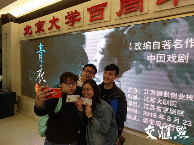 此次在北大的演出由江苏振昌文化传媒有限公司主办,公司负责人表示,推动戏曲进校园,也是一家有社会责任感的企业的担当。北京大学,只是《青衣》高校巡演的起点。交汇点记者了解到,为响应国家弘扬中华优秀传统文化的号召,推进“戏曲进校园”工作,京剧《青衣》今年将走进江苏省10所重点高校进行巡演。力求通过面对面的演出,打破“年轻人很难接受传统戏曲”的旧观念,培养青年戏曲观众,加强大学生人文素质教育,保护和传承民族优秀传统文化,增强文化自信。江苏大剧院有关负责人告诉记者,“让《青衣》走进高校巡演,就是为了让更多年轻人通过‘第一次接触’从而接受、喜欢,进而主动传承传统文化,这也可以说是江苏大剧院制作《青衣》的初衷所在吧。”