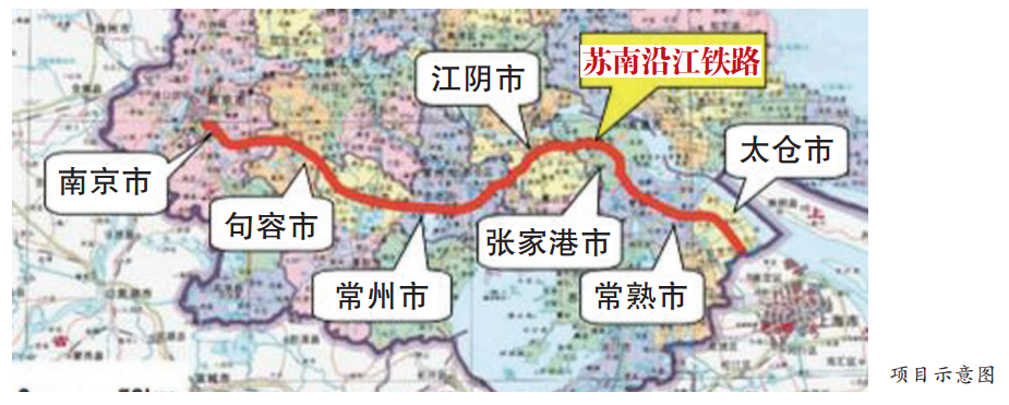 苏南沿江高铁为新建铁路建设项目。项目路线起于南京枢纽南京南站,经南京市、句容市、常州市、江阴市、张家港市、常熟市、太仓市,引入太仓站后利用沪通铁路进入上海枢纽。新建正线全长278公里,江宁联络线5公里左右,太仓联络线7.6公里,代建泰锡宜铁路同步实施工程6公里、盐通张铁路同步实施工程13.6公里。