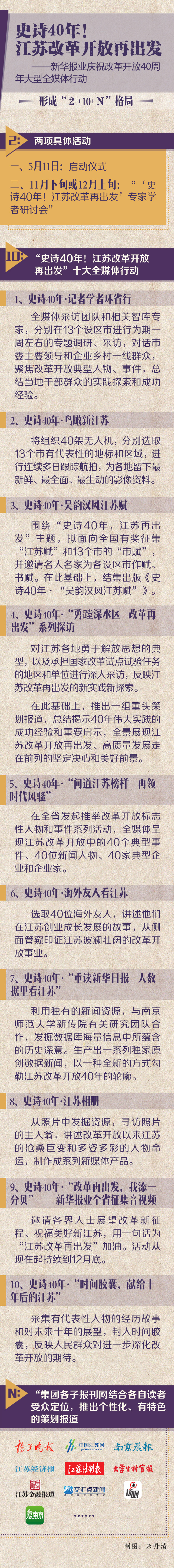 总之,绘制40年史诗巨制,我们已经准备好了,走在改革开放的延长线上,我们将用文字打捞那些“可昭示未来的过去”,用图片言说打上年代烙印的人事物,用视频展示变迁中的“江苏印记”,用思想穿透时光、指引未来,来,以你的方式讲你的故事,和我们一起书写这段波澜壮阔的历史,将江苏改革开放进行到底!