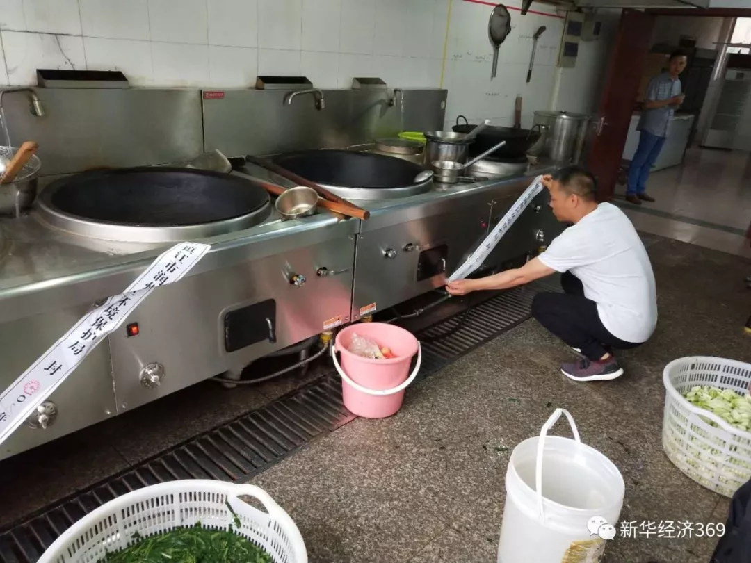 镇江市环保执法人员现场查封油烟净化装置不到位的餐饮店。