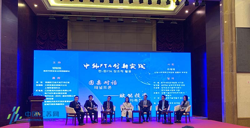 中国江苏网12月12日讯 今天下午,“中韩FTA创新实践”主题论坛在盐城举行。作为2019年江苏推进自贸协定宣传工作品牌“FTA惠苏企”的年度大作,此次论坛结合中韩自贸协定实施4周年和中韩(盐城)产业园设立两周年,聚焦中韩FTA,邀请了中韩专家、典型企业、基层部门等共同探讨中韩企业积极有效利用中韩FTA优惠政策的创新举措。会议吸引了来自江苏省内近200家企业前来参加。江苏省商务厅副厅长孙津、南京海关副关长彭伟鹏、江苏省贸促会副会长肖铁军、大韩贸易投资振兴公社南京代表处馆长张炳松作为主办方分别为论坛发表致辞。