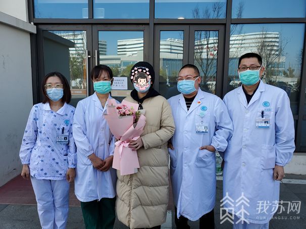 (2月20日,黄女士治愈出院,与医护人员合影 图片来源:苏报融媒)