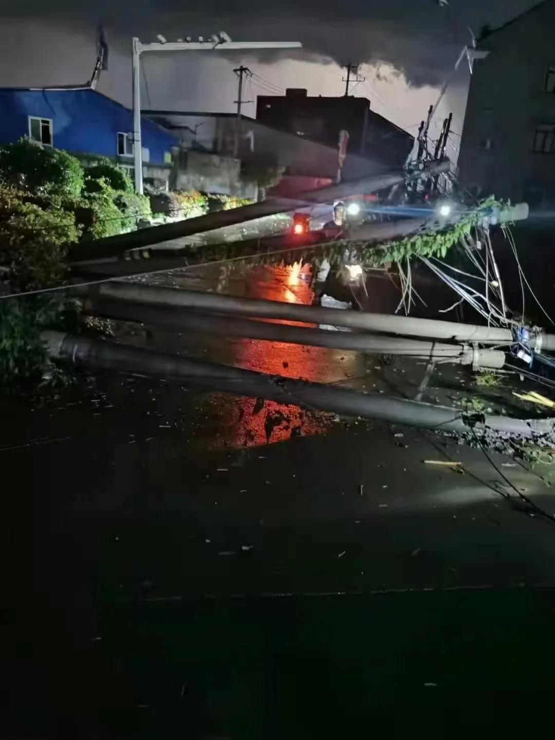 中国电信吴江分公司启动应急保障机制,立刻组织人员赶赴现场,并在盛泽东港局建立临时指挥中心,争分夺秒做好通信抢修工作。盛泽区域14个局站出现停电,62个基站退服,中继光缆中断1条,累计倒杆50根。