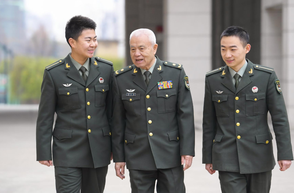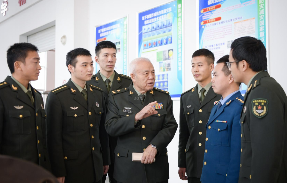 钱七虎院士和年轻的学生在交谈。