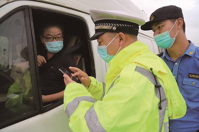 26日,南京市高淳区桠溪街道360省道宁常界离宁查验点,交通和城管等部门工作人员正在有序对经公路驾乘车辆离宁人员进行核酸阴性证明及健康码查验。 高晓平 摄 (视觉江苏网供图)