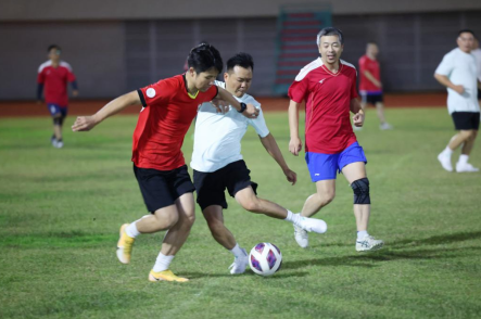 在苏超决赛前夕,体育赛事的热度与期待在全国范围内持续升温,而在南京农业大学滨江校区足球场上,一场同样精彩且意义非凡的赛事正悄然拉开帷幕。10月30日晚,一场别开生面的足球联谊赛在此激情上演,上海“头雁”学生联队与南农教工足球队以球会友,共同书写了一堂活力与温度并存的“体育思政实践课”。“雁小超上海市‘头雁’足球风采展,楠小秾南农导师绿茵情谊长”的横幅随风轻扬,红底白字间,承载着赛事主题,更串联起师生间深厚的情感纽带。