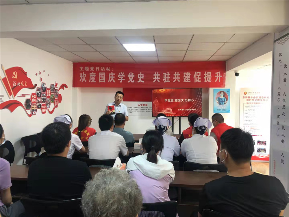 开展党史学习,赓续红色血脉。牛山街道杏林社区在新时代文明实践站与共驻共建单位东海县人民医院联合开展系列活动。在活动现场,党员们朗诵了爱国诗篇《英雄赞歌》《中华颂》和《红岩》等优秀红色经典诗词和篇章。朗诵者们慷慨激昂、情感真挚,现场的党员干部在欣赏节目的同时,也上了一堂别开生面的“诵读党课”。活动中播放了《建国大业》影视中的精彩片段,大家深受感动,精神上得到洗礼,更觉得今天的幸福生活是前辈们用血和肉奋斗出来的,纷纷表示以后将努力学习党史,传承红色基因,共同缔造文明和谐社区。