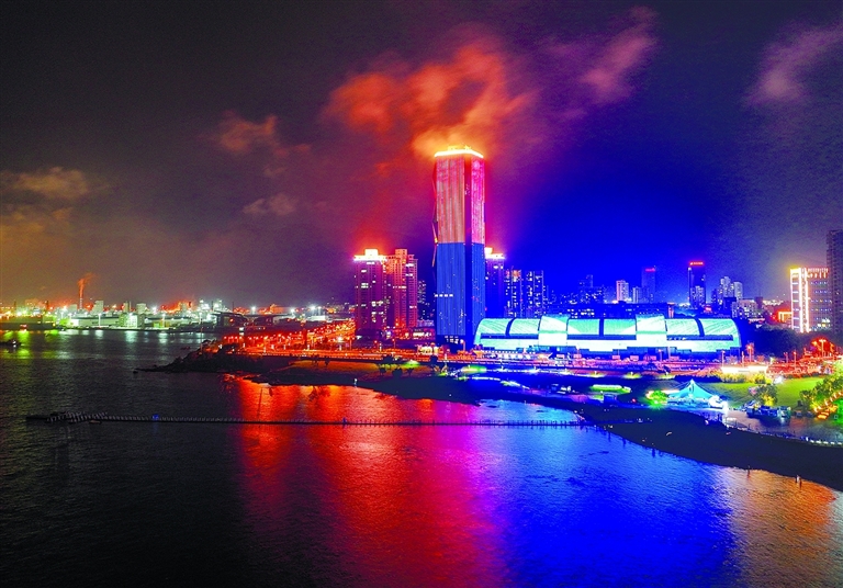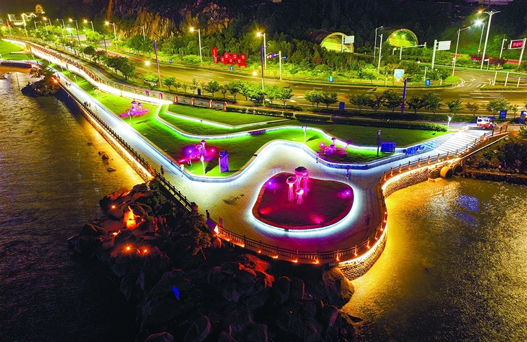 7月4日晚,一场风雨过后,连云港市东部海滨城区在霓虹灯的衬托下流光溢彩,美不胜收。