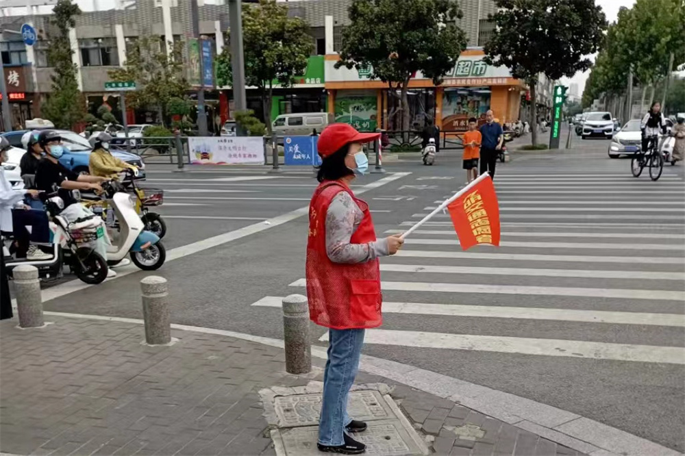 (图为审计志愿者们积极参与文明交通劝导志愿服务)