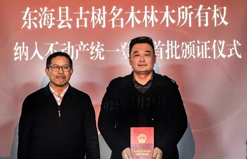 即日起,东海县正式将古树名木所有权登记纳入不动产管理,这是江苏省颁发的首本古树名木不动产权证书。