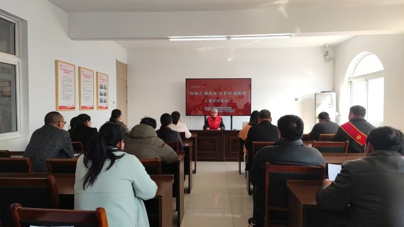 在典型事迹宣讲、宣传系列活动中,连云港市“最美阅读推广人”冯寿绕来到讲堂,他结合自身多年工作实践,用理论结合实例为村民群众生动阐释了当前农村转观念、除陋习、树新风的重要性和必要性,并指明家风家训在家庭教育、文明乡风建设方面的现实指导意义。在宣讲的最后,他向全体村民发出强烈号召:“我们要从今天开始,从自身做起,积极投身到移风易俗、破旧立新的活动中来,去除铺张浪费陋习,倡导文明节俭美德,弘扬社会新风正气,让文明新风吹遍全镇每一个角落,共同为大家营造出一个文明和谐、健康向上的好环境……”。