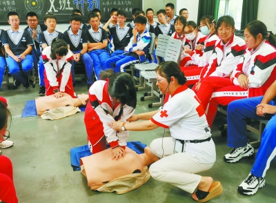 近日,鼓楼区红十字会的工作人员来到金陵中学,对高一新生进行应急救护培训,通过基本救护理论和实践操作训练,让受训学生树立“人人学急救,急救为人人”的理念,了解、掌握自救互救的基本技能。