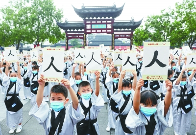 昨天,夫子庙小学328名一年级新生来到夫子庙大成殿前参加“开笔礼”,在传统的开笔破蒙仪式中正式入学。 通讯员 刘宁 南京日报/紫金山新闻记者 徐琦 摄