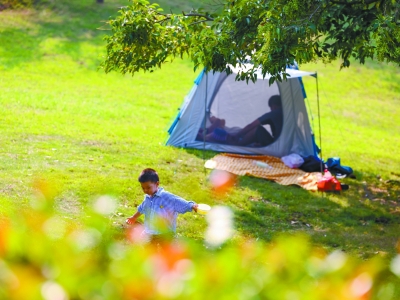 中秋假期,天气晴好、风和日丽,不少市民选择周边近郊游亲近大自然,草地上搭起帐篷,享受温暖阳光,度过惬意且绿色的假期生活。 南京日报/紫金山新闻记者 段仁虎 摄