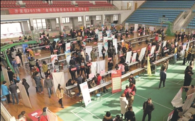 中国江苏网2月20日讯 2月18日上午,市开发区春季大型公益性“金鸡报晓暨春风送岗”招聘会在区青少年活动中心体育馆举办。区内120多家用人单位进场招聘,提供岗位4000多个,吸引5000多人进场求职。