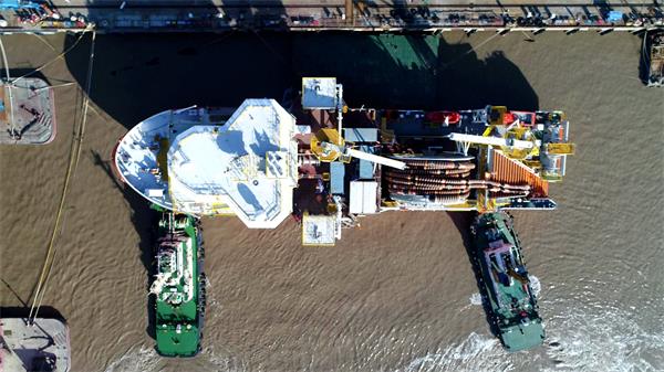 全球首艘深海原油转驳船从江苏启东出海试航
