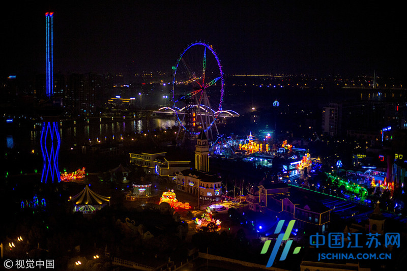 中国江苏网讯 2019年2月19日,当天是正月十五元宵佳节,江苏南通新春团圆灯会在港闸区探险王国举行。灯会展出的各色花灯璀璨绚丽,点亮了城市的黑夜,吸引了众多市民的目光。