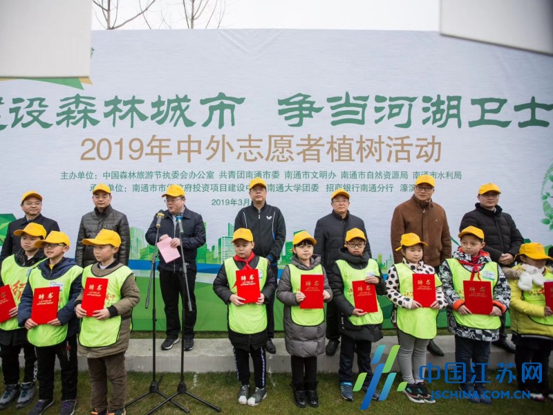 现场,南通市委宣传部副部长、市文明办主任蔡忠,2019中国森林旅游节执委会办公室主任、南通市农业农村局局长朱进华、副局长周金荣,共青团南通市委书记王鸣昊、副书记卢林,南通市水利局机关党委书记沈波,南通市市级政府投资项目建设中心副主任冯强等领导与志愿者们一同植树,并为中国森林旅游节国际青年友谊林揭牌。