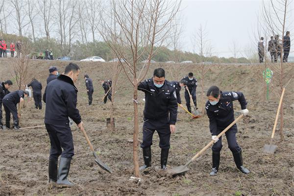 树苗,为提高生态环境质量,创建绿色家园贡献公安力量。(薛爱华)